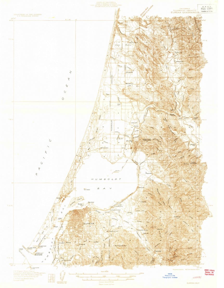 1933 Eureka, CA – California – USGS Topographic Map For Cheap Online